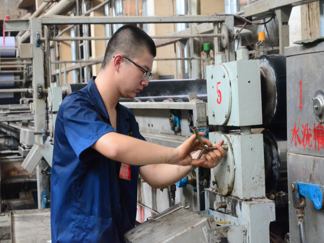炎炎夏日里,人要時時注意防暑降溫,設(shè)備亦然。夏季車間溫度高,濕度重,對設(shè)備的維護(hù)保養(yǎng)要比其它季節(jié)更重要。一上班,面一車間設(shè)備人員李洪凱和師父韓海濤就開始了對車間印染設(shè)備的維護(hù)保養(yǎng)工作。清潔設(shè)備表面、檢查緊固零部件、檢查更換易磨損零件……內(nèi)容看似簡單,但只要把這些簡單的基礎(chǔ)性保養(yǎng)工作做好,就能大大減少設(shè)備的檢修工作量和檢修次數(shù),保障設(shè)備的順利運行。