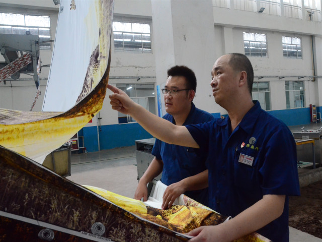 在公司科技產(chǎn)業(yè)園花布平網(wǎng)印制車間,化料、調(diào)漿、安裝刮刀……孫維生正忙著和同事們進(jìn)行開車前的準(zhǔn)備工作。經(jīng)過(guò)前期安裝和調(diào)試,公司進(jìn)口的兩臺(tái)平網(wǎng)印花機(jī)及相關(guān)配套系統(tǒng)已達(dá)到批量生產(chǎn)的要求和能力??粗闷骄W(wǎng)印花機(jī)生產(chǎn)出來(lái)的花布產(chǎn)品,大家在心里為公司未來(lái)的發(fā)展更加充滿了信心。