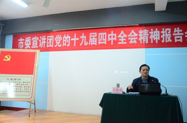 11月30日,市委宣講團成員,市生態(tài)環(huán)境局黨組成員、副局長王景志來到公司,為黨員代表和骨干管理者代表宣講了黨的十九屆四中全會精神。