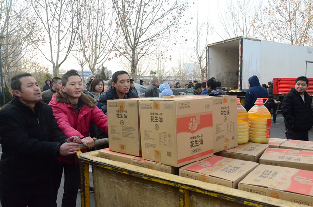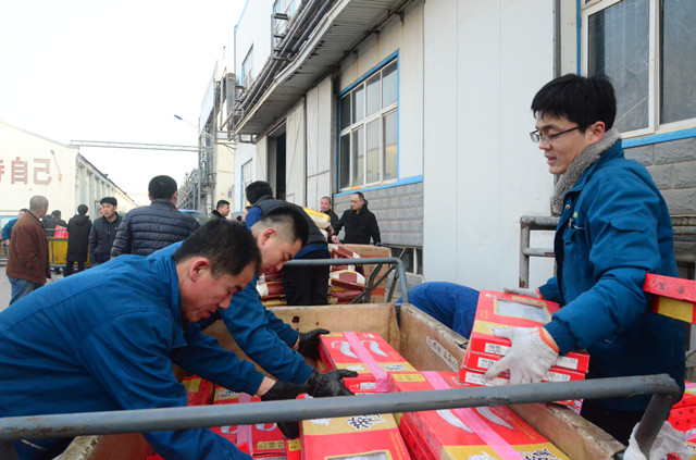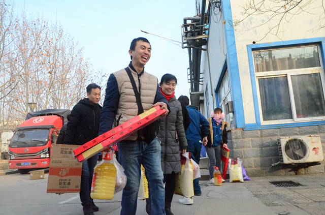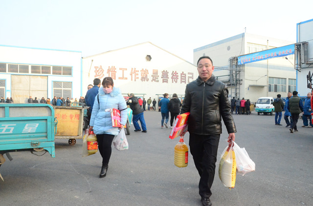1月21日,公司主廠區(qū)廣場上再現(xiàn)熱烈氣氛,員工們以部門為單位,在這里領(lǐng)取公司為在崗員工和退休職工準備的豬肉、花生油、大米等“年貨”,以體現(xiàn)對廣大員工建設(shè)企業(yè)、奉獻事業(yè)的慰問之情。