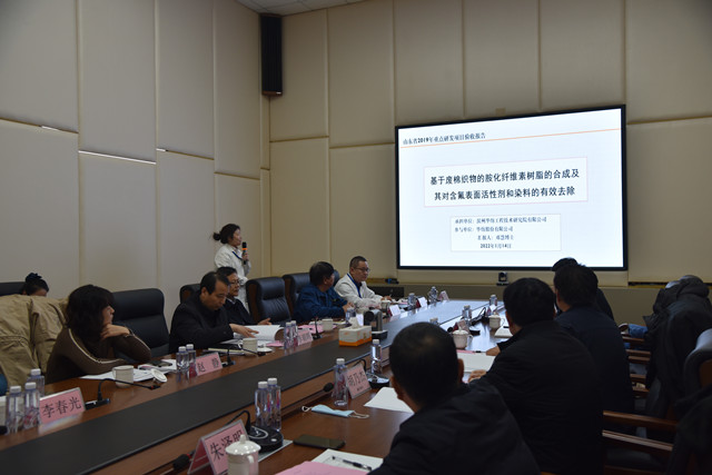 導(dǎo)讀:1月14日,山東省重點(diǎn)研發(fā)計(jì)劃(公益類)項(xiàng)目“基于廢棉織物的胺化纖維素樹脂的合成及其對含氟表面活性劑和染料的有效去除”項(xiàng)目驗(yàn)收會(huì)議在公司舉行。