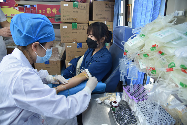 獻(xiàn)血隊(duì)伍中,既有工作多年的老同志,也有剛剛參加工作的新員工。獻(xiàn)血車(chē)就位后,員工在濱州市中心血站工作人員的指導(dǎo)下,認(rèn)真填寫(xiě)獻(xiàn)血登記表、測(cè)量血壓、抽血化驗(yàn),經(jīng)血液檢驗(yàn)合格后開(kāi)始獻(xiàn)血。“我參加無(wú)償獻(xiàn)血的初衷,就是想盡自己的一點(diǎn)力量。”在場(chǎng)參與獻(xiàn)血的一名員工說(shuō)到。簡(jiǎn)單的一句話,展現(xiàn)的卻是充滿溫暖情感的無(wú)私之愛(ài)。
