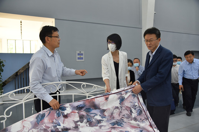 調(diào)研組一行先后到公司智云中心、檢測中心、綜合辦公區(qū)、服裝面料展廳、花布展廳、家紡展廳、創(chuàng)意設計中心、工程技術研究院、花布車間生產(chǎn)現(xiàn)場等實地調(diào)研,詳細了解了企業(yè)運行、市場營銷、科技創(chuàng)新、戰(zhàn)略規(guī)劃等情況,詢問企業(yè)發(fā)展過程中遇到的問題和困難,并聽取了公司董事長盛守祥對公司總體生產(chǎn)經(jīng)營情況的匯報。調(diào)研組對公司多年來的發(fā)展成績給予了充分肯定,并表示華紡公司多年來深耕紡織印染領域,不斷做大做強、是一家高質(zhì)量發(fā)展、成長性良好的企業(yè);同時,企業(yè)在發(fā)展的過程中積極履行社會責任,體現(xiàn)了企業(yè)的社會擔當。