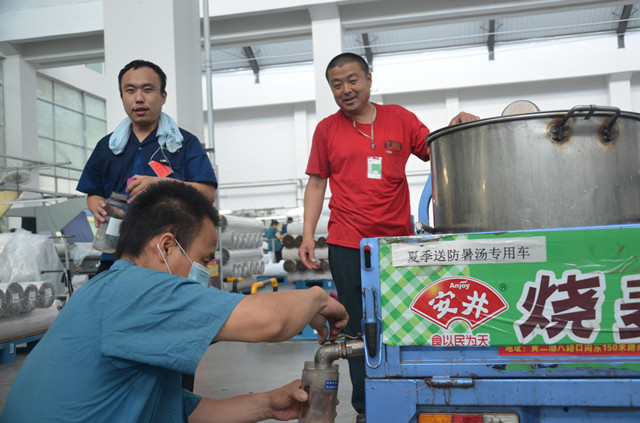 圖為6月20日公司向生產(chǎn)一線(xiàn)發(fā)送綠豆湯和西紅柿雞蛋湯的情形。