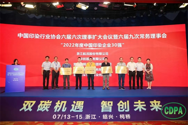 7月14日,中國印染行業(yè)協(xié)會六屆六次理事擴大會議暨六屆九次常務理事會在浙江紹興召開。會上,中國印染協(xié)會發(fā)布了“2022年度中國印染企業(yè)30強”名單,公司以在多方面的綜合成效躋身這一行列。