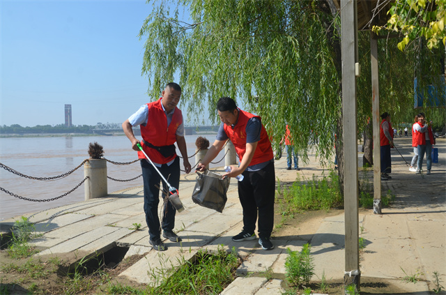 上午8時50分志愿者們準(zhǔn)時集合出發(fā),大家身穿紅色馬甲,頭頂烈日、自由組隊,發(fā)揮團(tuán)隊協(xié)作精神,沿著黃河兩岸徒步行走撿拾垃圾,有的手持鉗夾,有的拿著垃圾袋,認(rèn)真清理收拾垃圾,將廢棄的煙盒、燒烤殘余等垃圾清理干凈放入袋中。志愿者們充滿干勁,充分發(fā)揚不怕臟,不怕苦,不怕累的精神,積極投身到環(huán)境清潔行動中,成為黃河邊一道靚麗的風(fēng)景線。
