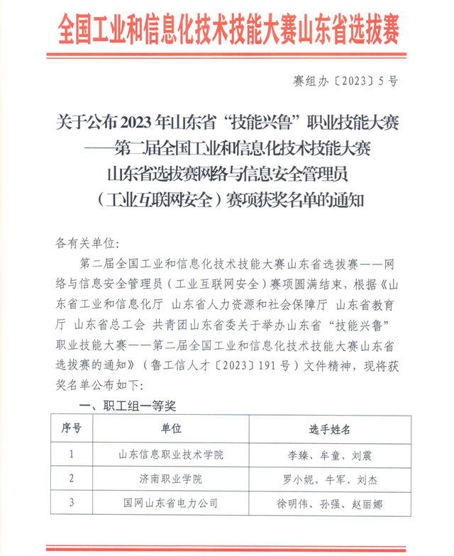 導(dǎo)讀:近日,2023年山東省“技能興魯”職業(yè)技能大賽——第二屆全國工業(yè)和信息化技術(shù)技能大賽山東省選拔賽網(wǎng)絡(luò)與信息安全管理員(工業(yè)互聯(lián)網(wǎng)安全)賽項圓滿結(jié)束,