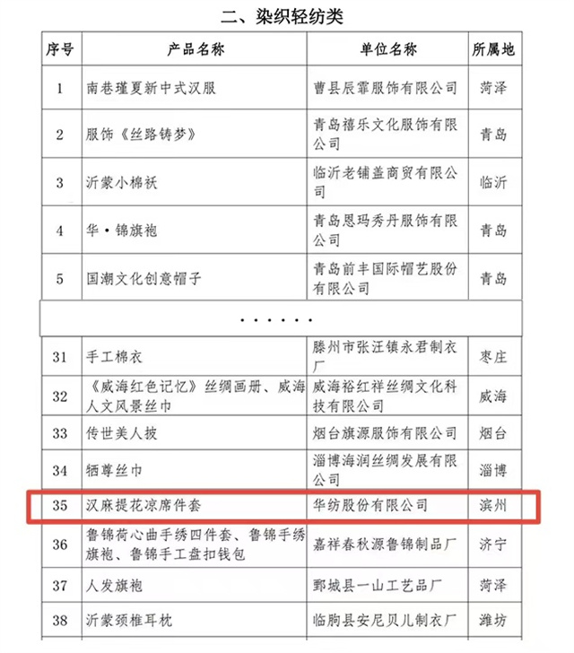 導(dǎo)讀:其中,公司家紡床品產(chǎn)品——漢麻提花涼席件套作為染織輕紡類,成功入選2023“山東手造·優(yōu)選100”名單,這無疑是對(duì)公司產(chǎn)品品質(zhì)與工藝的高度認(rèn)可。