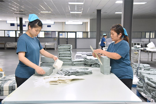 在高強(qiáng)度的工作環(huán)境下,王營和吳志叢不僅沒有放慢腳步,反而更加注重細(xì)節(jié),力求完美,確保每一件產(chǎn)品都達(dá)到卓越的品質(zhì)標(biāo)準(zhǔn)。最終,憑借她們不懈的努力與頑強(qiáng)的拼搏,完成天絲枕套熨燙4000件,整疊包裝枕套1600對,以兩人之力完成了相當(dāng)于五至六人的工作量。