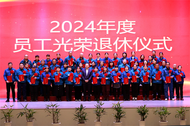 會上,為2024年度退休的員工舉辦了光榮退休儀式。公司黨委委員、紀(jì)委副書記、副總經(jīng)理孫玉濤宣讀了2024年度退休員工名單;黨委書記、董事長盛守祥為退休員工代表頒發(fā)榮譽(yù)證書;退休員工張炳營代表67位退休員工作退休感言。