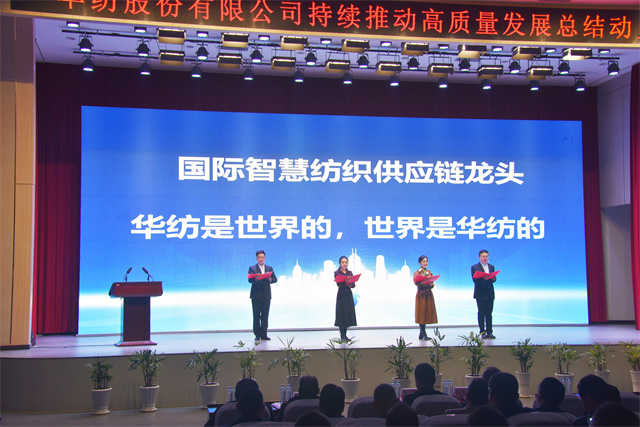 1月1日,華紡股份有限公司持續(xù)推動(dòng)高質(zhì)量發(fā)展總結(jié)動(dòng)員大會在會議中心一號會議室隆重召開。公司黨委書記、董事長盛守祥,公司黨委、行政班子成員、戰(zhàn)略委員會成員、2024年度退休員工代表、各部門主要負(fù)責(zé)同志以及在職員工代表等五百余人齊聚一堂,總結(jié)2024榮光,展望2025宏圖,表彰優(yōu)秀、激勵(lì)先進(jìn)、凝聚共識、匯聚力量,以昂揚(yáng)的姿態(tài)譜寫公司高質(zhì)量發(fā)展的嶄新篇章。