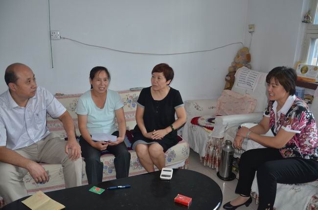 市總工會(huì)幫扶中心主任孫戰(zhàn)洪、市總工會(huì)法律保障部主任左麗華等到華紡公司職工家中慰問。
