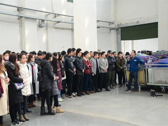 2月22日,濱州學(xué)院藝術(shù)學(xué)院黨總支副書記牛愛之、學(xué)生科科長秦玉國及240余名師生來到公司參觀交流,公司人力資源部、職工學(xué)院、團(tuán)委等負(fù)責(zé)人,帶領(lǐng)師生們一行參觀了公司科技產(chǎn)業(yè)園的花二車間、制版中心、家紡成品車間等,并著重介紹了公司的發(fā)展?fàn)顩r和前景。參觀結(jié)束后,同學(xué)們紛紛表示對(duì)公司整潔的工作環(huán)境、智能化的生產(chǎn)現(xiàn)場印象深刻。帶隊(duì)老師表示,華紡的發(fā)展令人鼓舞,希望回校后組織有就業(yè)意向的學(xué)生來公司實(shí)習(xí)、就業(yè)。