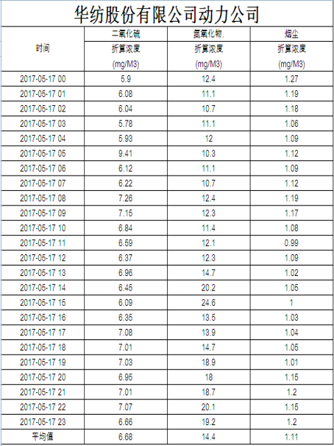 煙氣排放數(shù)據(jù)信息公開2017.5.17數(shù)據(jù)