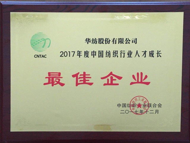 公司獲得全國(guó)紡織行業(yè)人才成長(zhǎng)最佳企業(yè)