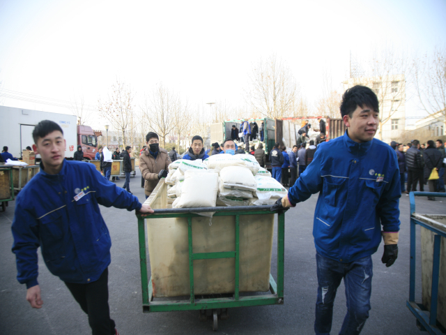 2月10日,公司主廠區(qū)廣場上非常熱鬧,員工以部門為單位,在這里領(lǐng)取公司為在崗員工和退休職工準備的豬腿、花生油、大米等“年貨”,以體現(xiàn)對廣大員工建設(shè)企業(yè)、奉獻事業(yè)的慰問之情。