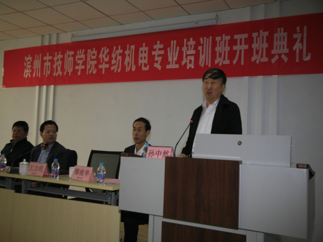 4月3日,公司與濱州市技師學(xué)院在公司工程技術(shù)研究院舉行“華紡機(jī)電專業(yè)培訓(xùn)班開班典禮”。開班典禮在莊嚴(yán)的國歌聲中開始,濱州市技師學(xué)院黨委副書記、院長丁愛軍,黨委委員、副院長穆俊華,公司黨委書記、董事長王力民,總工程師羅維新在主席臺(tái)就坐,并為學(xué)員代表授書,丁愛軍和王力民分別發(fā)表講話。