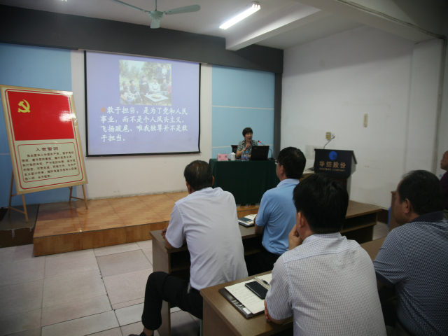 6月30日,華紡股份有限公司黨委組織主管以上黨員和普通黨員代表開展了唱國歌、重溫入黨誓詞、上黨課活動(dòng)?;顒?dòng)由公司黨委副書記、總經(jīng)理閆英山主持。
